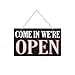 Small Business Signs: Open and Closed sign for your business. Clean, bold, and modern design that features a braided rope for hanging. Front side reads, Come in We're Open and back side reads, Sorry, We're Closed. This sign is perfect to hang on your entryway door going into your business.