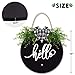 Round welcome sign: Welcome visitors to your home with this hanging welcome sign. A great way to greet your guests featuring the word “Welcome” on a leafy green wreath background. It makes a pretty, seasonal style decoration for fall, winter, spring, or summer.