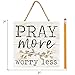 Features sentiment that reads “Pray more worry less”; Distressed white finish and creative accents paired with sentiment of hope and inspiration