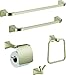 Kit includes 24-in towel bar, robe hook, towel ring, and toilet paper holder