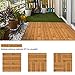【Efficient Drainage Design】The gaps between 4 flats and hollow base help water to drain quickly, maintain good breathability and keep the surface dry. The pp base is designed with triangular structure to keep these wood pavers stability when people standing on even over grass, carpet or concrete. The base also helps wooden deck tiles away from wet ground for keeping away from mold and mildew. In addition, the uneven texture of the wood deck tiles surface increases slip resistance.