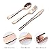 ✔「Sever for 25 Guests」: This party dinnerware set comes with including 9" dinner paper plates *25, 7" paper dessert plates *25, 9oz paper cups *25 and luncheon napkins (3-ply and measuring 6.5" x 6.5") *25, 25 sets of heavy duty rose gold glitter plastic cutlery (25 forks, 25 spoons, 25 knives)