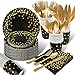 ✔「High Quality & Elegant Festive Design」:This party supplies pack is designed to black background and golden foil polka dot pattern, Bring high-end and elegant atmosphere to your party. All the products are made of BPA Free, non-toxic and tasteless plastic. They are very strong. The plates, knives, forks and spoons will not bend, break. Bright color, high-grade feeling.