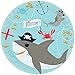These paper plates feature image of a big shark with pirate hat along with the anchor, crab and etc. in a blue background depicting the sea.