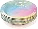 Pastel Rainbow Party Set Serves 24: Gift Boutique water colored party set includes 24 9” Dinner Plates, 24 7" dessert plates, 50 Luncheon Napkins, and 24 9 oz cups- featuring multi colored pastel rainbow colors- pink, purple, blue, and yellow.