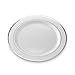 ELEGANCE - Boasting a design of a classy and elegant serve ware, disposable plates can be used at weddings, parties, social activities or when you find your regular dinner plates too boring. The high gloss finish and the elegant silver rim give them a look which is similar to glass or porcelain dishes.