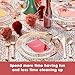 A STUNNINGLY STYLISH SETTING: Start using thsi disposable dinnerware set that your guests can't help but talk about. These heavy duty plastic plates for party feature stylish Rose Gold embellishments which match the silverware for a truly premium presentation.