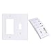 Decorator device + toggle combo is compatible with a GFCI receptacle, thermostat, rocker switch for lights, or a smart wi-fi enabLED light switch; Combo wall plate has a slot for a toggle light switch