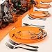 180PCS PACK HALLOWEEN DINNERWARE SET: Halloween orange plastic plates sets includes 30pcs 10.25" dinner plates,30pcs 7.5" salad plates,30 cups, 30 forks,30 knives and 30 spoons which are to entertain 30 guests.