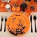 PREMIUM QUALITY: The orange disposable plates are BPA-Free, food grade plastic which can meet your needs and heavyweight plastic construction can resistant to breaking, bending and snapping, great for any kind of meal.So you can use these Halloween disposable plates worry-free at Halloween party.