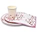 Cherry Party Set Serves 24: Gift Boutique Cherry party set includes 24 9” Dinner Plates featuring a big cherry with a green leaf in the center and scattered cherries and the word cherry printed around it with a red colored border with 50 Luncheon Napkins coordinating. 24 7” Dessert Plates is designed with double and single cherries and cherry printed and 24 9 oz. cups coordinating.