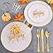 【CONVENIENT】Don't let the cleaning work affect your happy Thanksgiving mood. Our gold disposable plates can save you storage space, cleaning time, and the cost of hosting a party. It is a good choice. These white and gold plastic plates are your perfect choice.