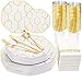 HIGH-QUALITY:The white plates, gold silverware , clear cup are make with food grade plastic material by injection process, it's non-toxic, BPA free, heavy weight,, sturdy and recyclable,