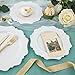 PERFECT FOR ANY OCCASIONS: This white gold plastic plates for party can meet any request. Throw parties Galas & Events - Host an event to remember! Perfect for weddings, bridal showers, engagement parties, anniversaries, bachelorette parties, baby showers, birthday bashes, graduation galas, family reunions dinners and holiday office parties.