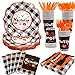 🎃【SERVES 24 GUESTS】: This Halloween plaid pumpkin party sets has a total of 144 pcs and it can serve 24 guests. It include 24 paper plates(9"), 24 napkins(3-ply)(folded:6.5")(unfolded:13"), and 24 cups(9 oz) with 24 pcs sets of forks, spoons and knives.