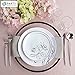 ELEGANT DESIGN: The White disposable plastic plates with silver printed match with the silver silverware, silver plastic cups and napkin. Can match with any decoration scene. All is disposable, save you cleaning time, enjoy a relaxing party with friend.