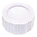 ELEGANT DESIGN :Our white dessert plates, pure white simulated ceramics, Baroque plastic plates has a unique elegant flower design with fine detailing, overall simple atmosphere.Round white disposable plates can be matched with any food, stylish and beautiful.