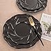 ❀【PERFECT FOR ANY OCCASIONS】The black party plates are our latest flower shapes design for holiday party,can be either appetizer supplies or meals plates.There are classy pattern on the black plastic plates looks more luxurious. Perfect for wedding,party,birthday and any other occasions,just throw it away after picnic,free your hands to avoid washing the black plates,spend more time to enjoy yourselves.Whenever you want,the halloween party plates is convenient for you.