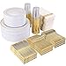 HIGH-QUALITY: Gold disposable plates and cutlery with stylish and elegant look like real china can add a touch of style to your event without the risk of broken plates and cleanup.