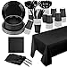 Black Party Supplies: These attractive Solid color design on paper dinner plates, dessert plates, cups, tablecloth sure to be loved by everyone. Set of solid colors party supplies adding an elegant, modern touch to any party. Perfect choice for a black Happy Birthday themed party.