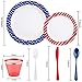 [78 Pack 4th of Juiy Plates] –USA Independence Day Theme platter set, including two different patterns. Red White Blue Element, believe that your family will love this set of cutlery sets!