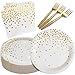 White and gold paper plates just open package and easily put gold dot disposable party dinnerware on table.After party, simply throw away to,allowing more time to enjoy the party without the hassle of cleaning greasy dishes!
