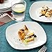 IVORY WHITE DINNERWARE & SAFE FOR DAILY - Made of fine porcelain, our square dinnerware sets are non-toxic and harmless, compatible with cold & hot food and safe for daily meal. Featured with ivory white glossy finish, the square with round-shaped plate set bring style into every kitchen, and perfect for any casual or formal dinning.