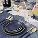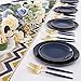 💙SUIT ANY OCCASIONS: These blue gold plates ideal for serving appetizers, wedding cakes, beef and noddles that require the look of elegance. So the navy plastic plates with gold rim are suitable for birthday parties, banquet, graduation ceremonies, weddings and so on.