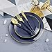💙PERFECT 30 GUESTS SETS: These blue plastic plates sets are perfect for 30 guests. It includes 30pcs 10.25inch dinner plates, 30pcs 7.5inch dessert plates, 30pcs plastic spoons, 30pcs plastic knives, 30pcs plastic forks. Whether these gold plastic plates are at a wedding or a party, they can enhance your style and add to your elegance.