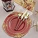 💕【TENDER AND ROMANTIC】Romance is hidden in every corner of spring, just as tenderness is engraved in every detail of these rose gold plastic plates. Transparent and sturdy elegant dinner plates with rose gold lace edge, with rose gold glitter silverware, is undoubtedly the most eye-catching standout of your table.