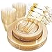 🍴VALUE PACK:Idea for 100 guests, Our disposable dinnerware set includes 100 dinner plates, 100 dessert plates, 100 forks, 100 knives, 100 spoons, 100 gold plastic cups and 100 hand napkins.Available for all types of foods.Satisfy all the needs of Party activities!