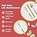 EASY TO USE: The weight of these white plastic plates are good and it holds up well for all sorts of food. No worry about them leaking. And the rose gold plastic flatware with perfect size and weight feel more like normal flatware, makes it very comfortable to hold for both adults and children