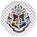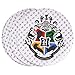 PLATES SET: Show off your love of Harry Potter with this 4pc 10" Melamine Plate Set of the Hogwarts Crest against a white background with tiny light grey house logos