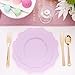 ELEGANT DESIGN: These clear pink plastic plates Adopt the baroque design, the shape is unique and beautiful. If you feel purple after receiving it, please don't worry, it is a superimposed color effect. After separation, a single plate is clear pink. Make your party fancy and shiny.