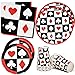 Casino Game Set Serves 24: Gift Boutique Casino and Poker Night party set includes 24 9” Dinner Plates featuring 4 playing card suits-red heart, spades, clubs, diamonds on a black and white background with a red and black border and 50 Luncheon Napkins coordinating. The 24 7” Dessert Plates features the 4 playing suits in black and white squares with a red border and 24 9 oz. cups coordinating with a black red and white border.