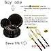 🍰BLACK AND GOLD PARTY SUPPLIES: These attractive golden foil dot on black paper dinner plates, dessert plates, cups, napkins sure to be loved by everyone. Gold plastic forks knives spoons adding an elegant, modern touch to any party. Perfect choice for a black and golden Sweet Happy Birthday themed party.