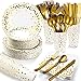 Safe and Reliable to Use: these white and gold plates and cups of disposable dinnerware sets are mainly made of quality paper, reliable and safe, convenient for people to use; The spoon, fork, knife are mainly made of plastic material, strong and smooth, not easy to break; Please do not microwave these products