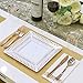 【PREMIUM QUALITY】Disposable Dinnerware Set is safe for you and your guests! Our gold disposable plates are made of 100% food-grade plastic, BPA free. The high-quality dinner plates and salad plates offer reliable strength and durability, ensure won't scratch or break easily.