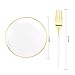 Healthy: gold plastic dinnerware set made of 100% food grade plastic, BPA free and no toxic . The high-quality dinner plates with gold rim design offers reliable strength and durability, sturdy and healthy.