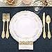 HEALTHY: Gold plastic dinerware set made of 100% food grade plastic, BPA free and no toxic . The high-quality white dinner plates with gold rim offers reliable strength and durability, sturdy and healthy.