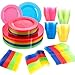 [Value Pack]-Neon party supplies set includes 36 dessert plates,36 dinner plates,36 cups,36 forks,36 spoons and 36 knives of rainbow colorful,enough quantity for an interested and unique Party!