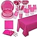 228 PCS Hot Pink Plate Party Supplies Set : Disposable birthday plates and napkins set can severs 30 guests, Sets includes 30 x 9 inches paper dinner plates, 30 x 7 inches dessert plates, 30 x 9oz paper cups, 30 plastic forks, 30 knives, 30 spoons, 48 x 6.5”napkins. From plates, cups and napkins to party cutlery, our hot pink party supplies include everything you need to celebrate in style.