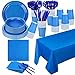 Blue Party Supplies: These attractive Solid color design on paper dinner plates, dessert plates, cups, tablecloth sure to be loved by everyone. Set of solid colors party supplies adding an elegant, modern touch to any party. Perfect choice for a blue Happy Birthday themed party.