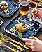 【Pretty Cool Design】The square modern design with an elegant blue finish makes a nice addition to existing dinnerware pieces. Crafted by reactive glaze, the blue gradually transitions to a gradient color, and the color changes are soft and natural. The special glaze color collides the colors to the extreme within the scope of craftsmanship, making your table glamorous and adding a touch of style to your dishes.