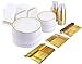 VALUE PACK: Each disposable dinnerware set includes 100 10.25” dinner plates and 100 7.5” salad, dessert or appetizer plates, 200 Paper Napkins, 100 9 Oz clear disposable gold rimmed plastic party cups, and 300 piece gold plastic silverware set including 100 forks, 100 knives, and 100 spoons. Available for all types of foods.