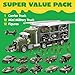 SUPER VALUE. 12 mini military army truck toy set in different designs and functions in one carrier truck. Including 12 featuring plastic soldiers figure, helicopters, tank, armored car, long truck, hovercraft, pickup truck, and so on.