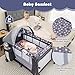 【Stable Construction & Easy Movement】 Sturdy & rustproof metal tubes and bottom 7-point support structure make the nursery center ultra stable. In addition, featuring 2 lockable smooth rolling wheels, this portable baby crib with changing table can be easily moved around and fixed in place.