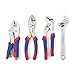 The 4-piece household tool includes 8-in slip joint pliers, 8-in groove joint pliers, 7-in locking pliers, and 8-in adjustable wrench