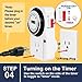 [EASY TO USE] Turn the outlet timer dial to the current time, push the pins down or pull up to set on/off time, set the manual override switch to timer mode,this programmable plug-in timer allows extremely convenient and flexible time setting for 24-hour 30 minute intervals directly.