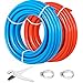 【RELIABLE PEX MATERIAL】- Amount: 2 rolls; Color: Red / Blue; Nominal Diameter: 1/2"; Total Length: 100ft. Made of excellent PEX material, this non-barrier PEX pipe is non-toxic, maintenance-free, and anti-aging. Fit for potable water or radiant floor water projects and keep quick & uninterrupted hot/cold water flows.